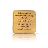 Das Geburtstagsfest stellt für den Jubilar eine große Herrausforderung dar. Umso wichtiger ist es, dass dieser Tag perfekt vorbereitet wird. Denn nur so wird dieses Fest zu einem unvergesslichen Ereignis - sowohl für den Jubilar, wie auch für seine Gäste. Im Bereich der Vorbereitung stellen die Hölzerne Einladungskarte Quastel eine sehr wichtige Komponente dar. Denn sie ist das Aushängeschild der Feier und gibt bereits erste Details über das mögliche Motto bzw. die Dekoration der Feierlichkeit preis. Hölzerne Einladungskarten sind Individuell und einzigartig. Die Einladungskarten von WeckeDesign hinterlassen einen guten Eindruck sind Rustikal aus Holz und sehr robust. Ein flotter Spruch oder eine typische Aussage, die man von Euch kennt, wird immer gut bei den Gästen aufgenommen. Für Qualität muss man tief in die Tasche greifen? Nicht bei Wecke Design! Wir bieten Dir die Einladungskarte Quastel aus echtem Holz in allerhöchster Qualität für einen unschlagbar günstigen Preis!